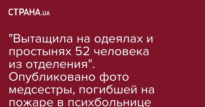 "Вытащила на одеялах и простынях 52 человека из отделения". Опубликовано фото медсестры, погибшей на пожаре в психбольнице Одессы