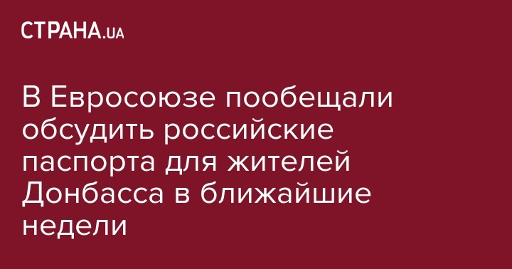 Вопрос выдачи российских паспортов жителям Донбасса руководство Евросоюза обсудит уже в ближайшие недели. Об этом пишет "Интерфакс-Украина"