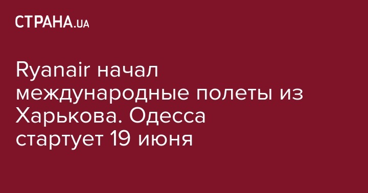Вчера, 17 июня, популярный европейский лоукост Ryanair начал международные рейсы из Харькова, выполнив рейс в польский Краков. Цены на билеты начинаются от 12 евро.