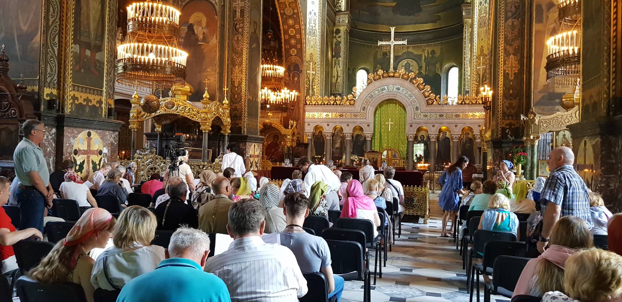 В четверг, 20 июня, в 11.00 во Владимирском Соборе начинается Поместный собор УПЦ КП. Внутри самого храма перед алтарем выставлен стол с 5 стульями, судя по всему места высшего духовенства церкви. В самом храме собралось порядка сотни человек, которые сидят в зонах "делегация" и "гости".