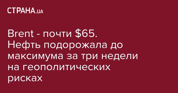 Brent - почти $65. Нефть подорожала до максимума за три недели на геополитических рисках