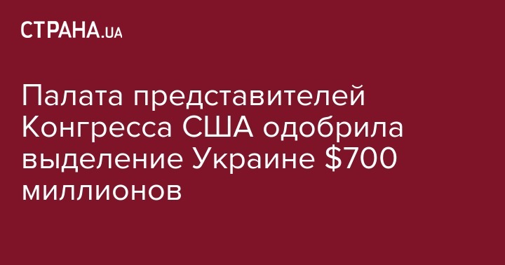 Палата представителей Конгресса США одобрила законопроекты, которыми предусматривается выделение Украине около $700 миллионов в следующем финансовом году (начинается в США с 1 октября - Прим.Ред.).
