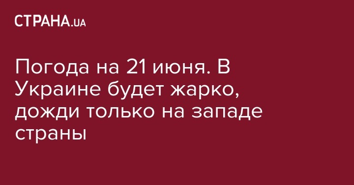 Погода на 21 июня. В Украине будет жарко, дожди только на западе страны
