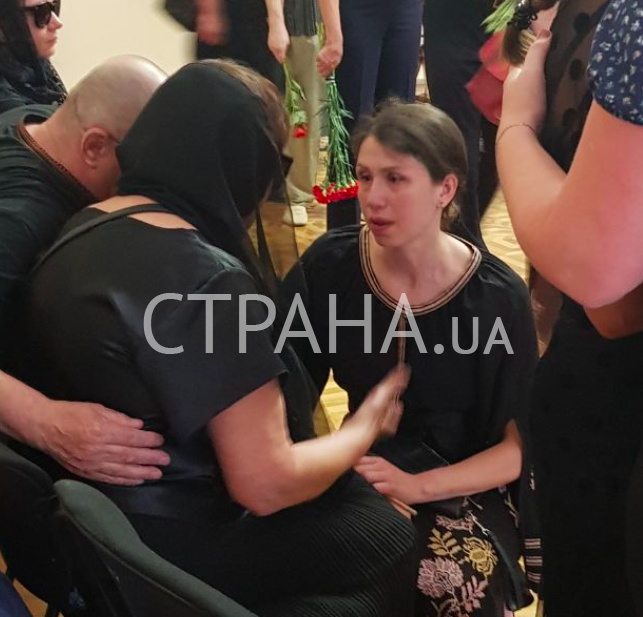Возле гроба политика сидели родители и любимая женщина, которая была в квартире в момент его гибели (на фото ниже).