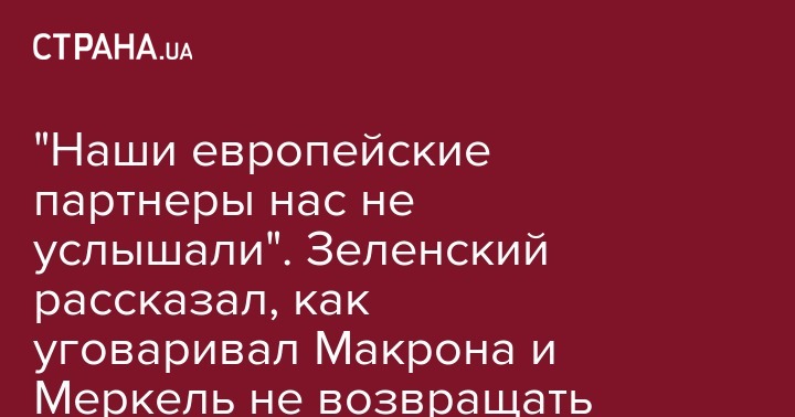 "Наши европейские партнеры нас не услышали". Зеленский рассказал, как уговаривал Макрона и Меркель не возвращать РФ в ПАСЕ