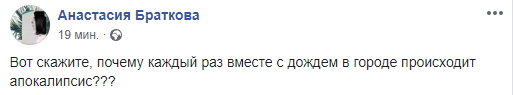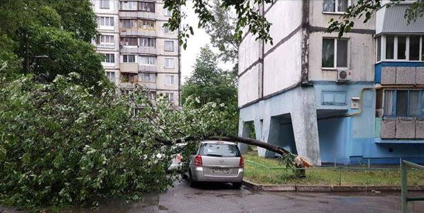 27 июня, после долгих жарких дней, около 12:30 Киев накрыл ливень. Небо затянуло тучами буквально за полчаса, а налетевшая на столицу гроза сопровождался сильными порывами ветра. Буря прошлась по всем районам города. Шторм повалил деревья на дорогу и автомобили, срывал кровли.
