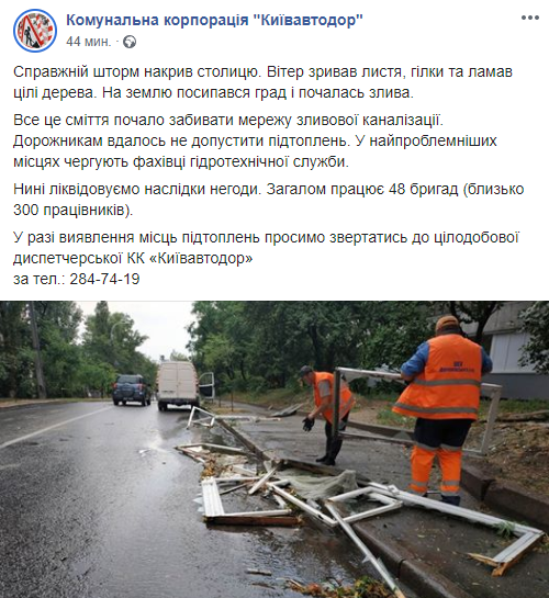 Последствия непогоды ликвидируют 48 бригад (около 300 работников). В случае выявления мест подтоплений коммунальщики предлагают обращаться в круглосуточную диспетчерскую "Киевавтодора" по тел .: 284-74-19.