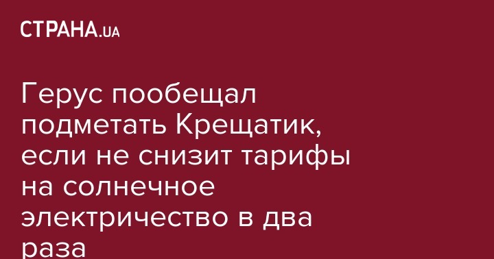 Представитель президента Украины Владимира Зеленского в Кабинете Министров Андрей Герус пообещал сдать депутатский мандат, если его получит, и подметать Крещатик в течение месяца, если он не сможет добиться снижения тарифа на "зеленое электричество" в два раза. Об этом он написал на своей странице в Facebook.