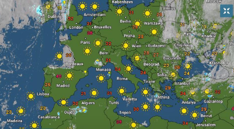 Вечером 29 июня погода не принесла европейцам облегчения. На юго-западе Европы температура достигает +40 градусов Цельсия. Об этом пишет на своей странице в Facebook синоптик Наталья Диденко.