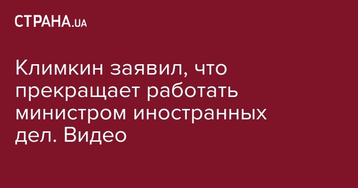 Министр иностранных дел Украины Павел Климкин заявил, что прекращает работать в должности и уходит в "политический отпуск". Об этом Климкин заявил в видеообращении на своей страницев Facebook.
