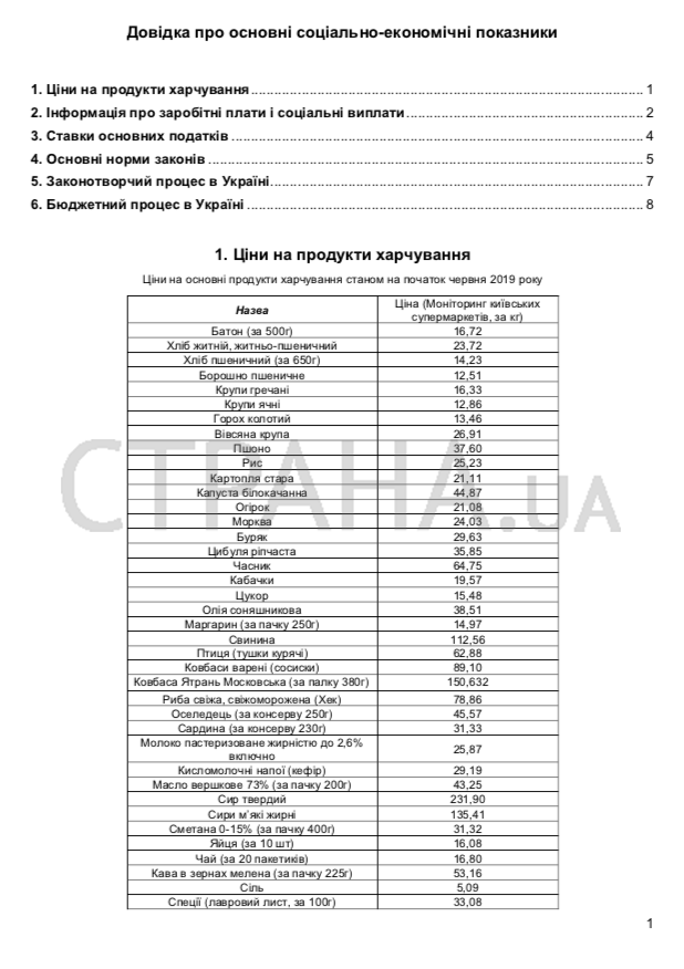 В нем указаны цены на продукты питания, информация о зарплатах и соцвыплатах, налоговые ставки, ключевые показатели госбюджета и важные законы.
