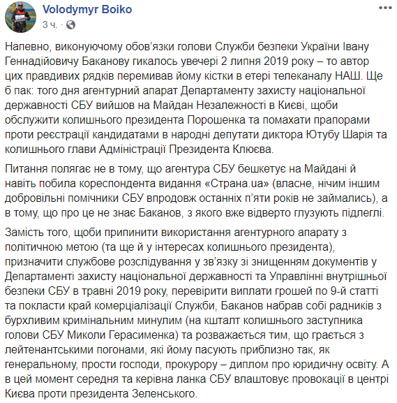 А в этот момент среднее и руководящее звено СБУ устраивает провокации в центре Киева против президента Зеленского".