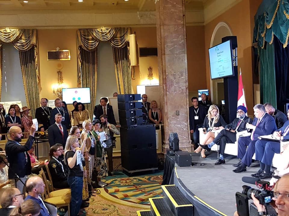 Активисты провели акцию "Кто заказал Катю Гандзюк?" во время  Международной конференции по вопросам реформ в Украине, которая проходила в Канаде. Об этом сообщила председатель правления Центра информации о правах человека Татьяна Печончик в Facebook.