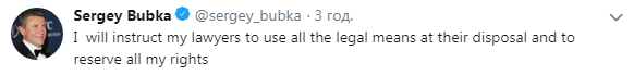 Бубка также добавил, что его адвокаты будут использовать все законные средства, чтобы защитить его права.