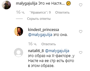 В конце концов, пользователи признали, что на снимке действительно Настя Каменских. В таком образе певица появилась на одном из эфиров популярного шоу "Х-фактор".