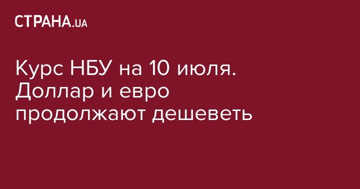 Курс НБУ на 10 июля. Доллар и евро продолжают дешеветь