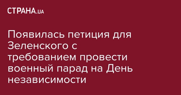 На официальном сайте президента Украины зарегистрирована петиция с требованием к Владимиру Зеленскому провести 24 августа военный парад. Текст документа, инициированного Мироном Дмитриком, появился на сайте главы государства 9 июля.