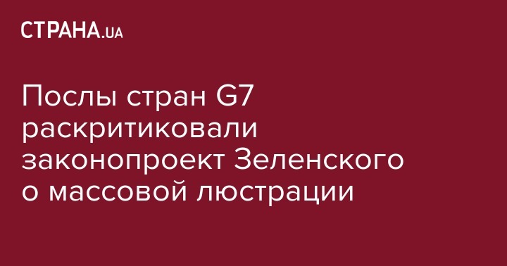 Послы стран G7 раскритиковали законопроект Зеленского о массовой люстрации
