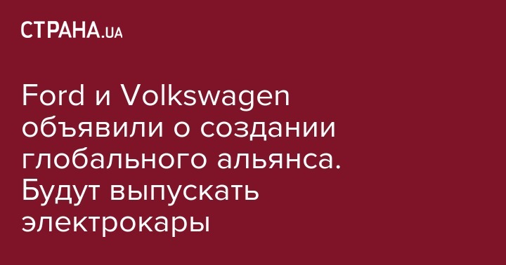 Ford и Volkswagen объявили о создании глобального альянса. Будут выпускать электрокары