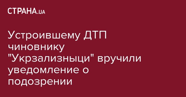 Уведомление о подозрении официально вручено уже экс-директору грузовых перевозок и логистики "Укрзализныци" Ивану Федорку. Таким образом Федорко официально получил статус подозреваемого в  дорожно-транспортного происшествии, в результате которого пострадала семья журналиста Максима Левина, сообщает "112.Украина".