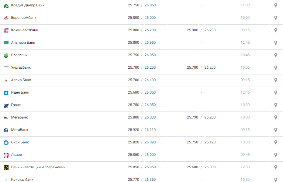 Торги открыли с 10:00. К 12:00 котировки были такие: 25,89 грн (покупка) и до 25,93 (продажа).