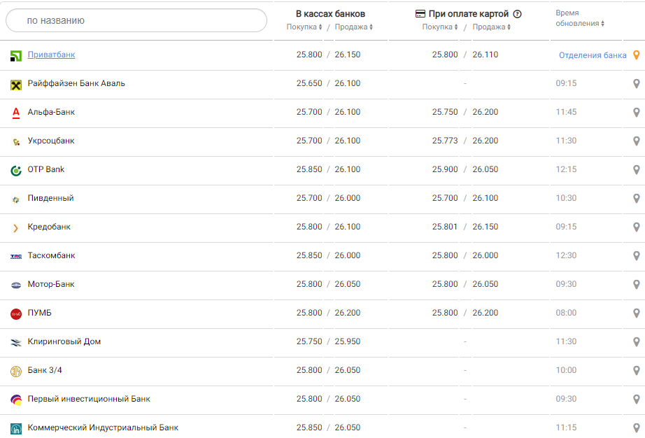 А к 13:00 за доллар давали и просили уже немного меньше: 25,85 (покупка) и 25,88 (продажа).