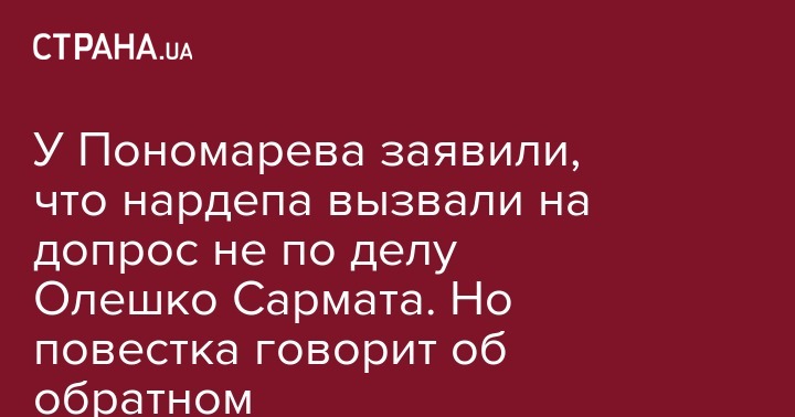 У Пономарева заявили, что нардепа вызвали на допрос не по делу Олешко Сармата. Но повестка говорит об обратном