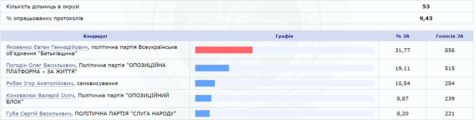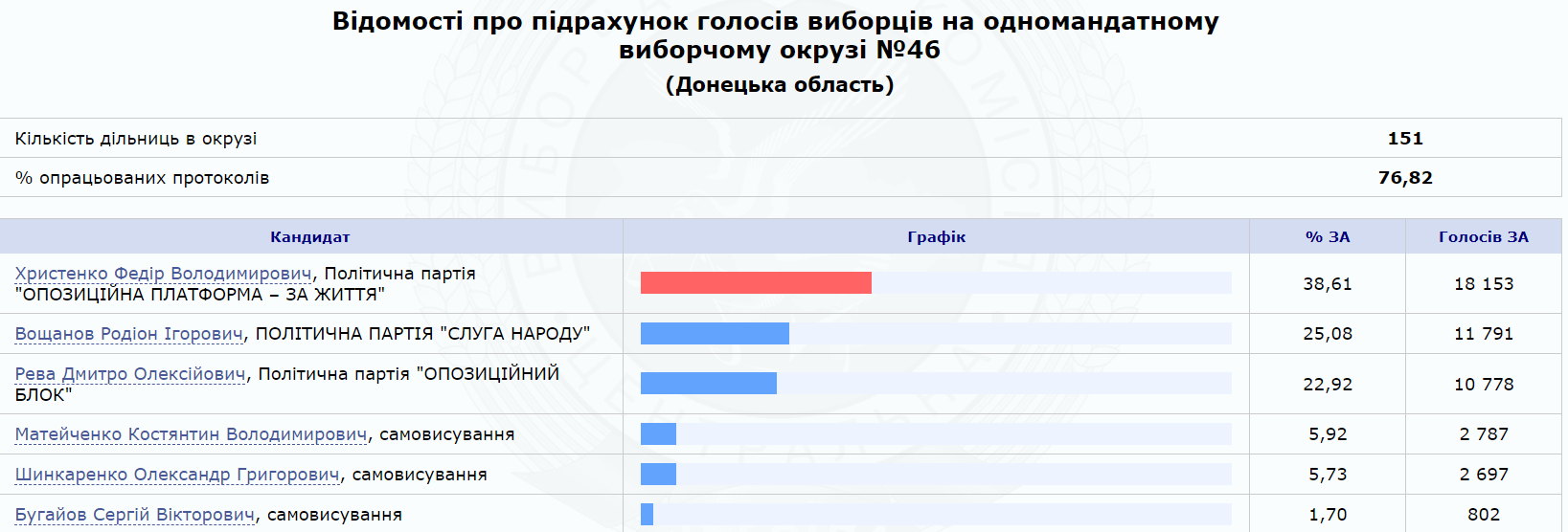 На 46 округе, согласно данным ЦИК, побеждает кандидат от "Платформы", предприниматель из Бахмута Федор Христенко.