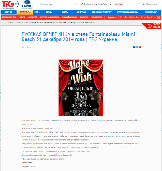 "Приглашаем вас провести Новогоднюю ночь "по-русски" в одном из самых известных отелей на Атлантическом побережье - Fontainebleau Miami Beach. Новый Год 2015 с русским размахом!