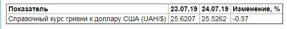 Справочный курс гривни 24 июля составил 25,52 грн за доллар США. Такие данные обнародованы на официальном сайте Национального банка Украины.