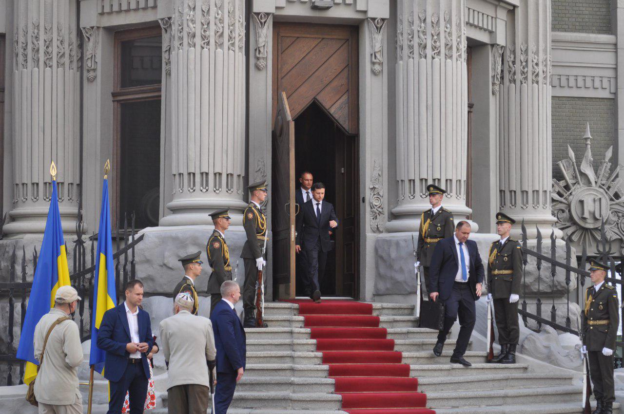 Появились фото президента Украины Владимира Зеленского, который покидает Офис президента после встречи с главами представительств ЕС и НАТО, которая состоялась сегодня, 24 июля.