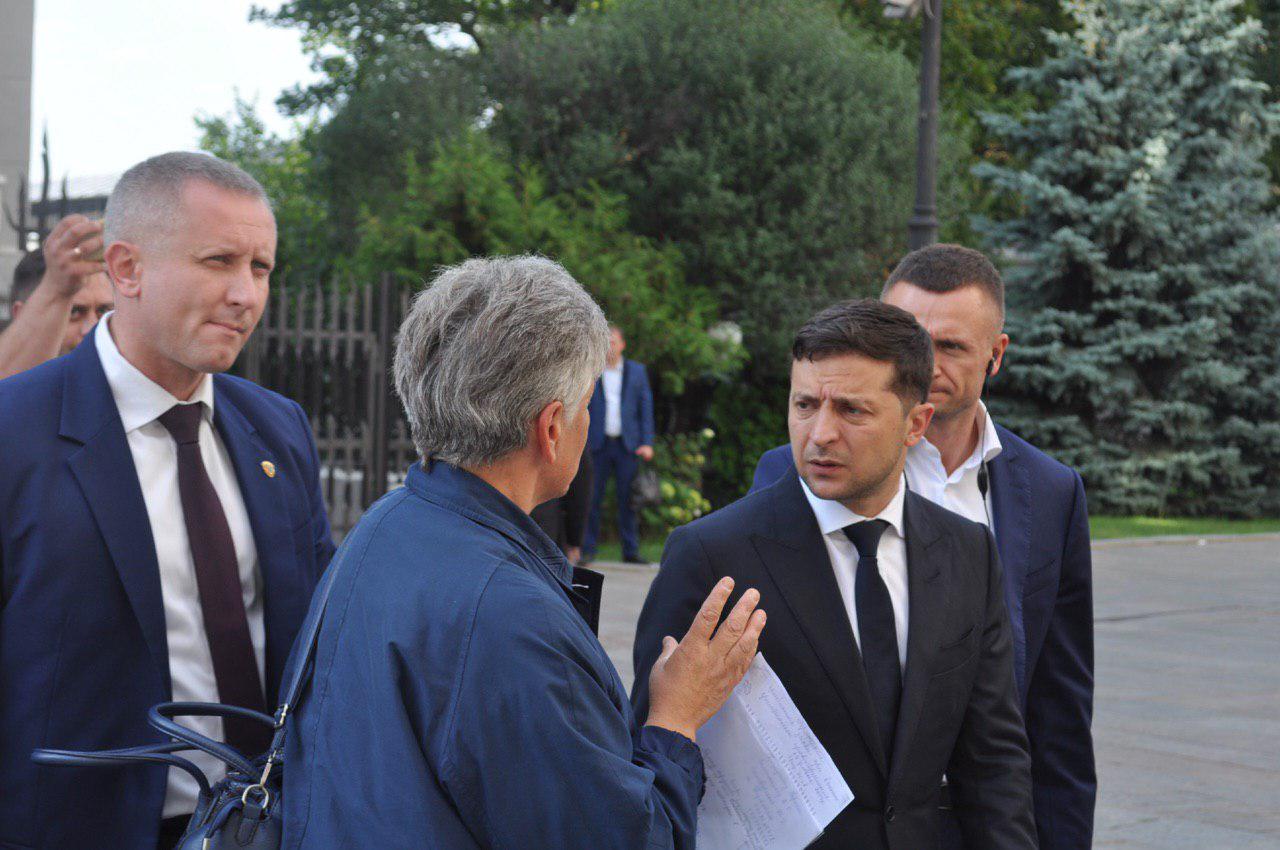 Появились фото, как Зеленский при выходе с Банковой встретился со стариком в тюбетейке