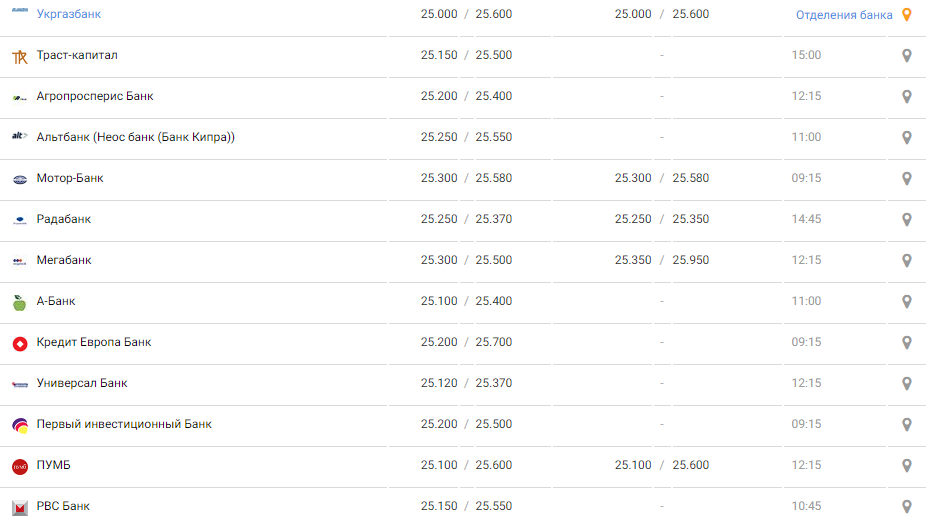 К 17:00 покупка была на уровне 24,95-25,4, а продажа 25,35-25,4 грн.