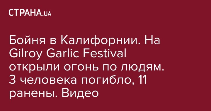 Вчера, 28 июля, в США произошла очередная массовая бойня. Трагедия разыгралась в городе Гилрой (штат Калифорния) на традиционном гастрономическом фестивале Gilroy Garlic Festival. Жертвами пока еще неизвестного стрелка стали по крайней мере три человека, еще 11 получили ранения.