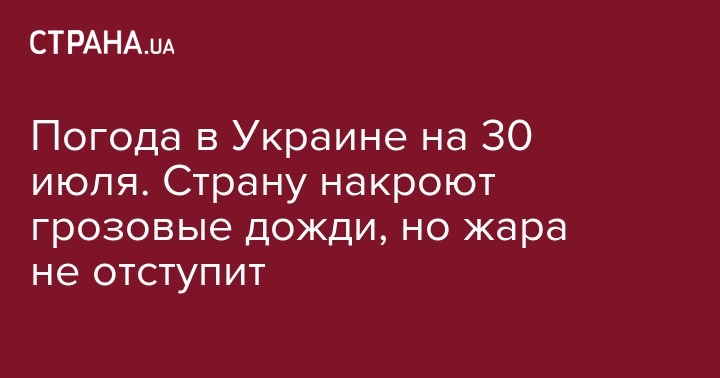 Вторник, 30 июля, в Украине будет дождливым днем. Грозы ожидаются во всех регионах страны. Об этом свидетельствует прогноз, размещенный на сайте Укргидрометцентра