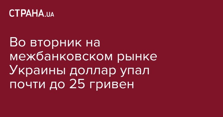 Во вторник на межбанковском рынке Украины доллар упал почти до 25 гривен