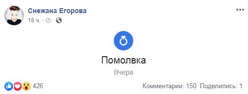 Известная украинская телеведущая и актриса Снежана Егорова, у которой пять детей, объявила о помолвке. Об этом телезвезда сообщила на своей странице в Facebook. Имя жениха 47-летняя Егорова не называет.