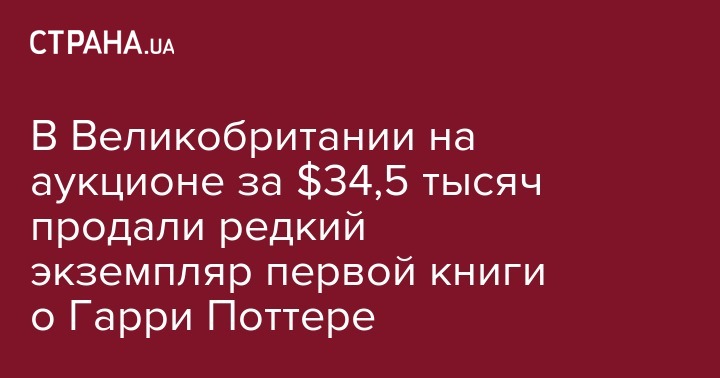 В Великобритании на аукционе за $34,5 тысяч продали редкий экземпляр первой книги о Гарри Поттере