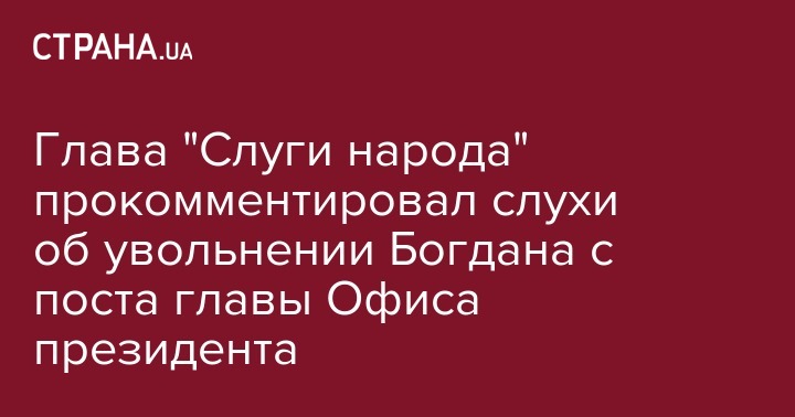 Глава партии "Слуга народа" Дмитрий Разумков заявил, что ему ничего не известно о якобы увольнении Андрея Богдана с должности главы Офиса президента. Об этом сообщает "Радио Свобода".