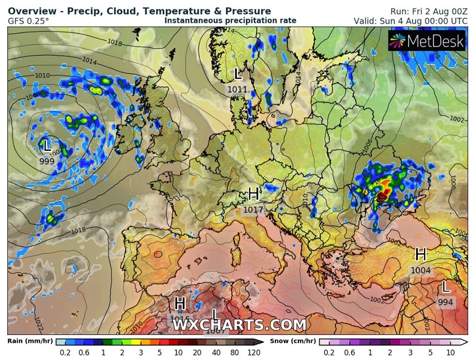 Позднее, 3 августа ночью и днем 4 августа на юге Украины, в центральных областях и на востоке - дожди, грозы, местами сильные ливни, локальный град. Также ожидаются шквалы. На севере и западе страны - небольшие дожди периодически с прояснениями, здесь циклон не будет так сильно действовать.