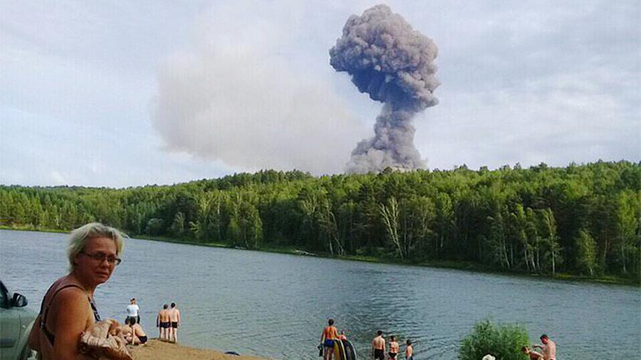 В Ачинском районе Красноярского края России продолжает пылать и взрываться арсенал, где хранились пороховые заряды к артиллерийским боеприпасам.