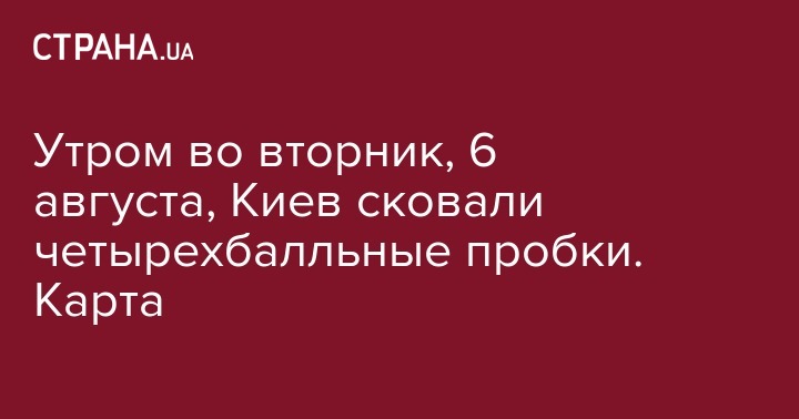 Утром во вторник, 6 августа, Киев сковали четырехбалльные пробки. Движение затруднено в центре города и Большой окружной. Об этом свидетельствует данные сервиса Google Maps.