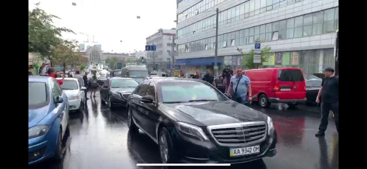 По номеру одной из машин видно, что это именно автомобиль экс-президента. "Мерседес" с таким же номером привозил Порошенко на допрос в здание ГБР.