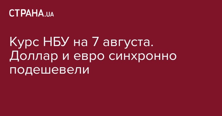Курс НБУ на 7 августа. Доллар и евро синхронно подешевели