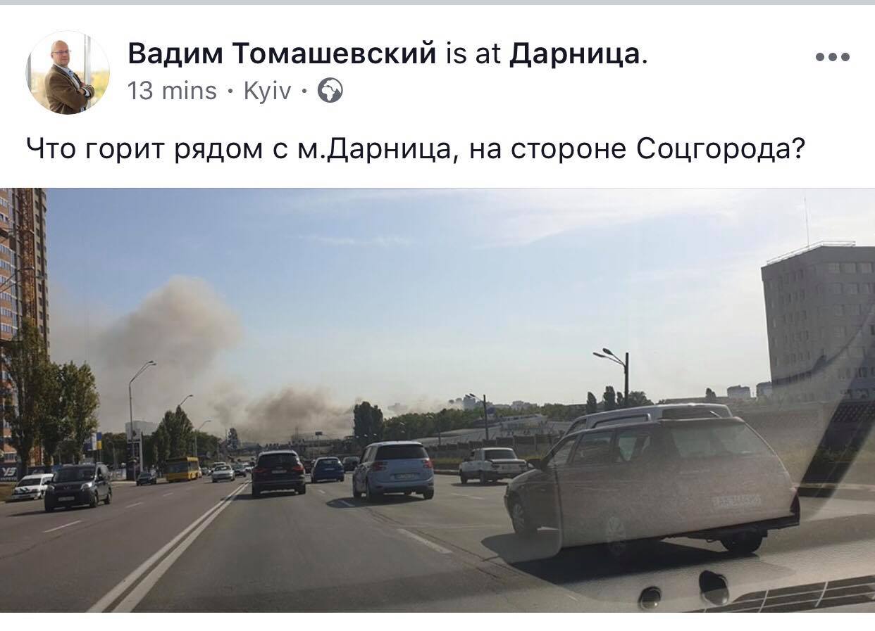 В Киеве горят магазины у станции метро "Дарница". Фото