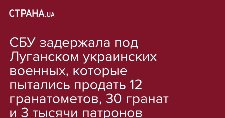 Трое военнослужащих и их сообщник пытались продать 12 гранатометов РПГ-22 и РПГ-26, 30 гранат РГД-5 и Ф-1, более 30 подрывников для гранат и почти три тысячи патронов недалеко от Северодонецка. За все оружие они просили 50 тысяч гривен. Подозреваемых задержали при попытке осуществить сделку.