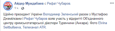 Отметим, что заместитель гендиректора телеканала ATR Айдер Муждабаев в Facebook написал, что вместе с Зеленским в открытии Объединенного центра крымскотатарской диаспоры приняли участие народный депутат Мустафа Джемилев (номер 6 партии Порошенко "Европейская солидарность") и глава Меджлиса крымскотатарского народа Рефат Чубаров.