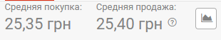 В обменках по состоянию на 08:00 средняя покупка была 25,35 грн, средняя продажа - 25,43 грн.