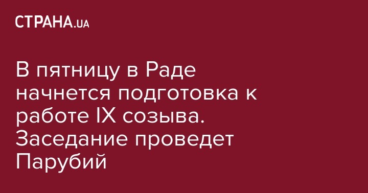Глава Верховной Рады Андрей Парубий созывает первое заседание подготовительной депутатской группы из числа новоизбранных народных депутатов на пятницу, 9 августа. Об этом сообщила руководитель пресс-службы парламента Ирина Кармелюк в Facebook.