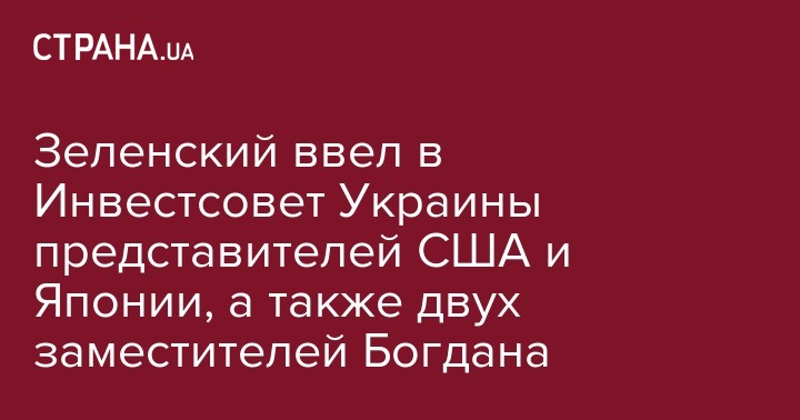 Президент Украины Владимир Зеленский ввёл в состав Национального инвестиционного совета Украины двух заместителей главы своей администрации, а также представителей корпораций из США и Японии.